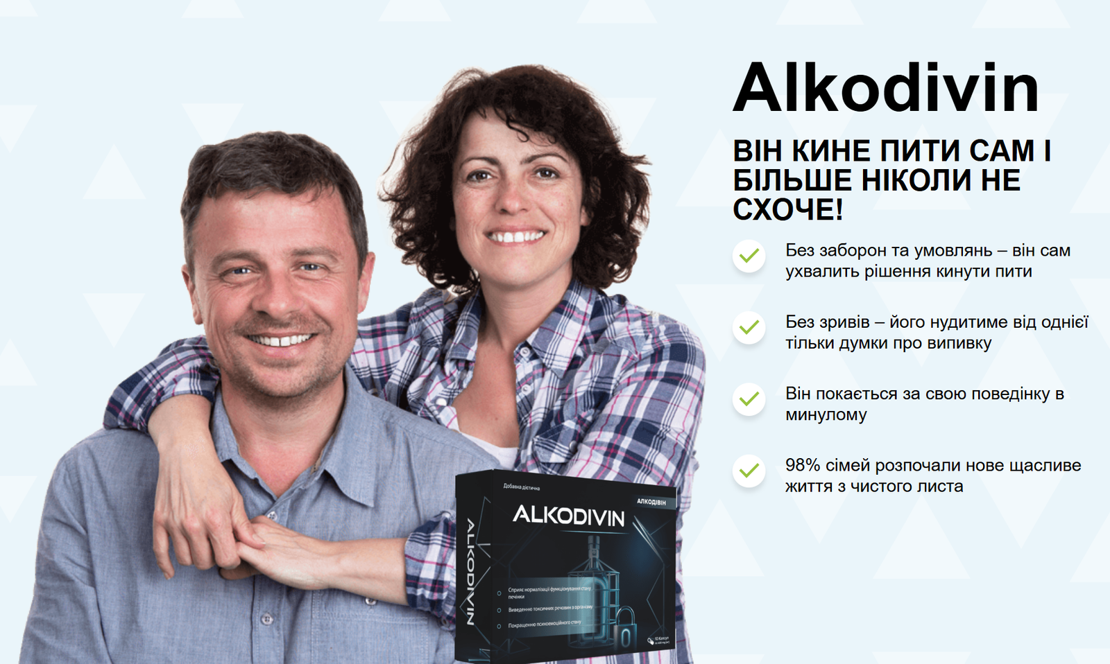 «Я купила Алкодівін для чоловіка. Ми пробували все раніше, але тремтіння після відміни та злість були надто сильними. Ця добавка дуже заспокоювала його нервову систему. Він терплячий, спить краще, а очі ясні. Це диво для нашої родини."
